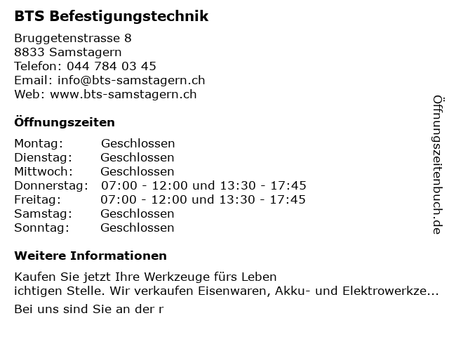| Freitag | 07:00-12:00 und 13:30-17:45 |