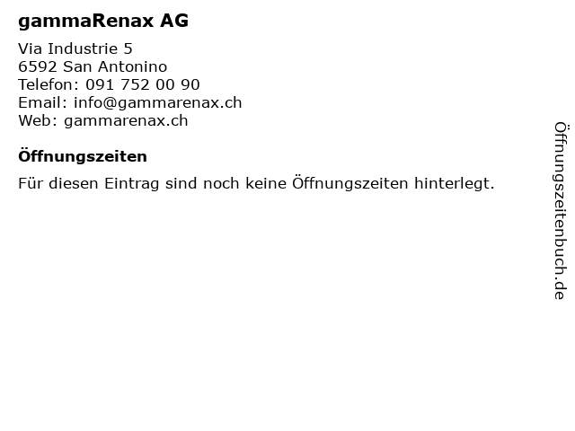 | Öffnungszeiten gammaRenax AG in San Antonino anzeigen | |