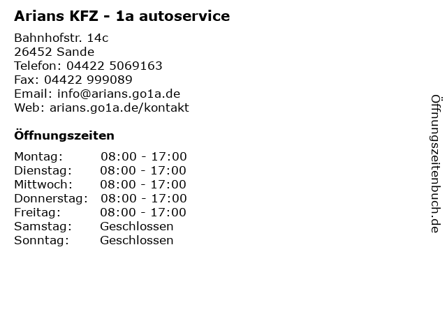 Öffnungszeiten Arians KFZ - 1a autoservice in Sande anzeigen | |