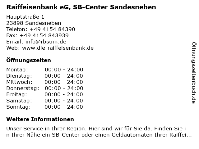 1 Raiffeisenbank Südstormarn Mölln eG (SB-Filiale Sandesneben) (Entfernung: 1,01 km) Am Amtsgraben ., 23898 Sandesneben 2 SB-Holzbau Sven Blessin (Entfernung: 5,18 km) Kapellenweg 5, 22929 Schönberg, Kreis Herzogtum Lauenburg 6 |