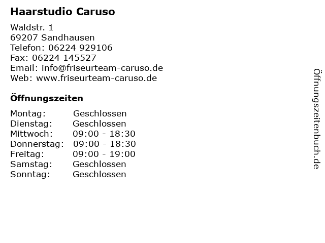 | Öffnungszeiten Haarstudio Caruso in Sandhausen anzeigen | |