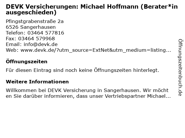 | DEVK Versicherungen: Michael Hoffmann (Berater*in ausgeschieden) anrufen | |