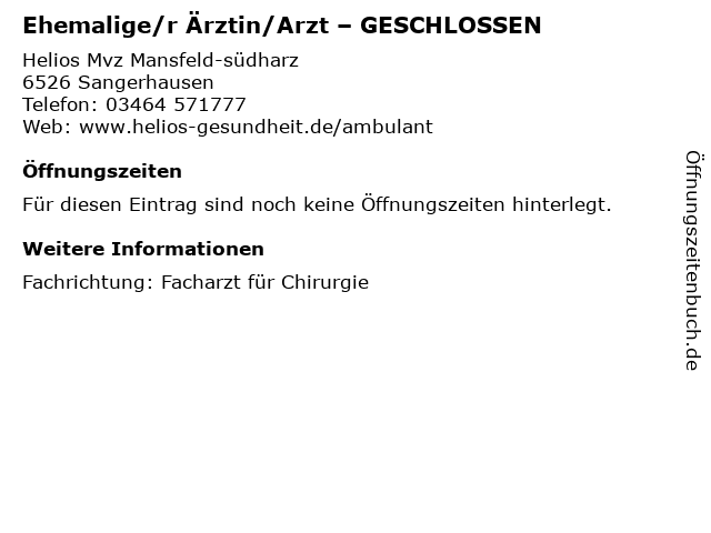 3 Dipl.-Med. Angelika Herzog (Ärztin) (Entfernung: 1,34 km) Franz-Heymann-Straße 54, 06526 Sangerhausen 5 Lohnsteuerhilfeverein Vereinigte Lohnsteuerhilfe e.V. - GESCHLOSSEN (Entfernung: 9,10 km) Neue Reihe 32, 06556 Artern 6 |