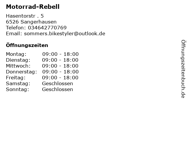 | Öffnungszeiten Motorrad-Rebell in Sangerhausen anzeigen | |