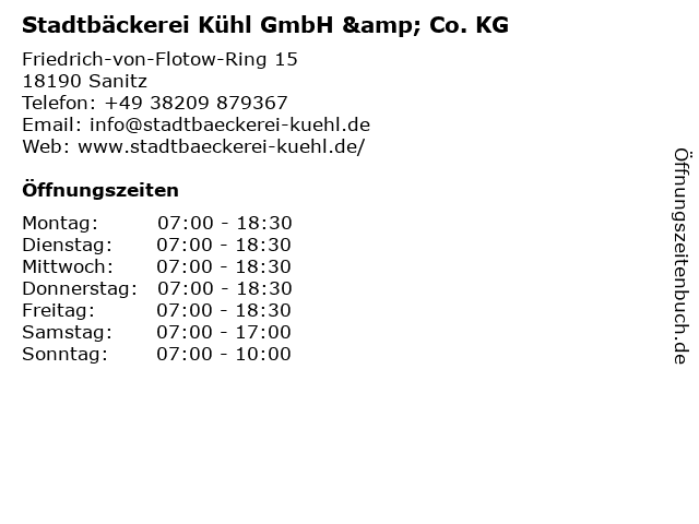 Öffnungszeiten Stadtbäckerei Kühl GmbH & Co. KG