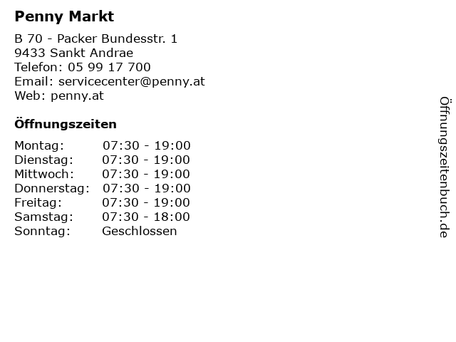 | Öffnungszeiten Penny Markt in Sankt Andrae anzeigen | |