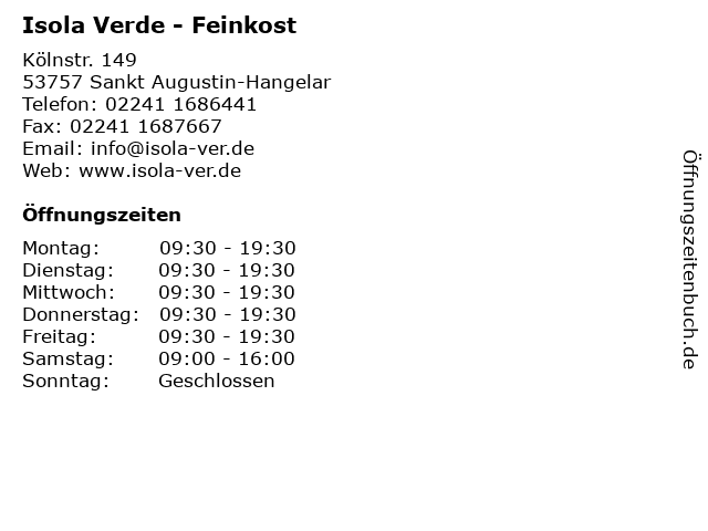 Branchen & Suchbegriffe zu Isola Verde - Feinkost:brot, delikatessen, essige, feinkost, gewürze, isola, käse, lebensmittel, spirituosen, verde, weine, wurstspezialitäten, öle |
