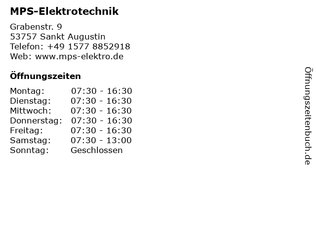 | Öffnungszeiten MPS-Elektrotechnik in Sankt Augustin anzeigen | |