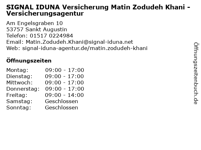Branchen & Suchbegriffe zu SIGNAL IDUNA Versicherung Matin Zodudeh Khani - Versicherungsagentur:iduna, khani, matin, signal, versicherung, versicherungsagentur, zodudeh |