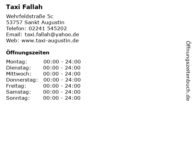 | Öffnungszeiten Taxi Fallah in Sankt Augustin anzeigen | |