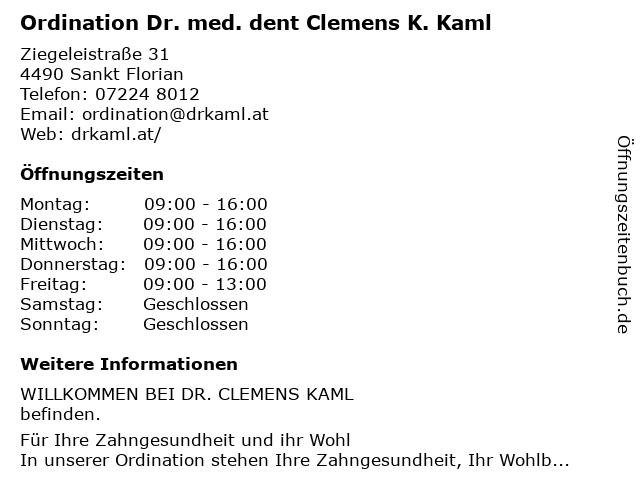 Branchen & Suchbegriffe zu Ordination Dr. med. dent Clemens K. Kaml:clemens, dent, dr., k., kaml, med., ordination |