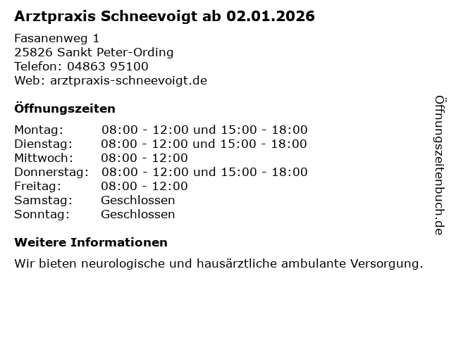 Branchen & Suchbegriffe zu Arztpraxis Schneevoigt ab 02.01.2026:02.01.2026, ab, allgemeinärzte, arztpraxis, schneevoigt, ärzte |