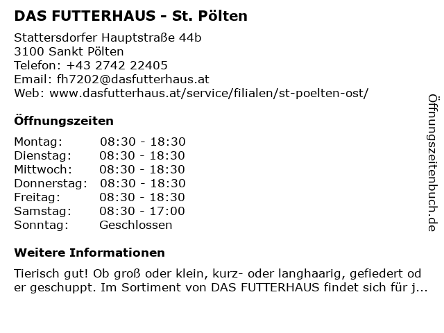 Branchen & Suchbegriffe zu DAS FUTTERHAUS - St. Pölten:futterhaus, hundeernährung, hundefutter, katzenernährung, katzenfutter, nassfutter, pölten, tierbedarf, tiernahrung, tierzubehör, trockenfutter, zoobedarf |