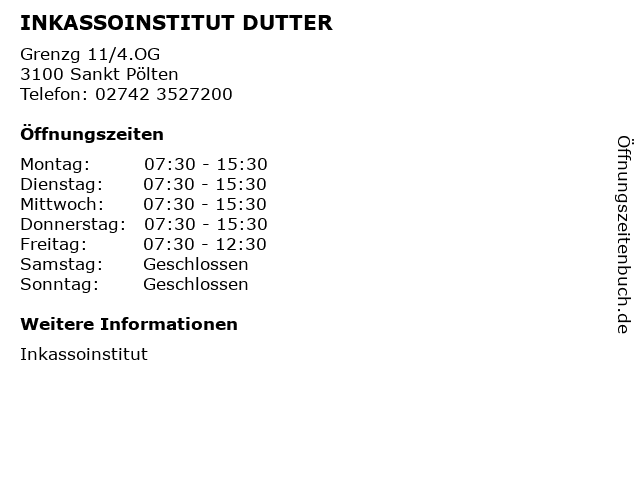 | Adresse INKASSOINSTITUT DUTTER in Sankt Pölten anzeigen |