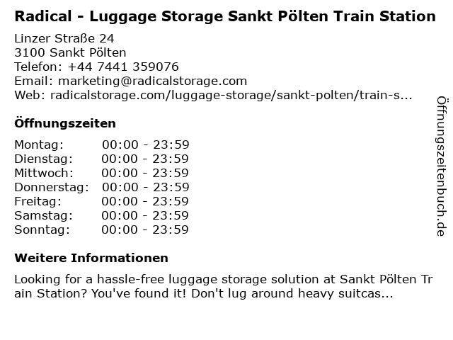 Branchen & Suchbegriffe zu Radical - Luggage Storage Sankt Pölten Train Station:luggage, luggage storage, luggage storage near me, pölten, radical, sankt, station, storage, train |
