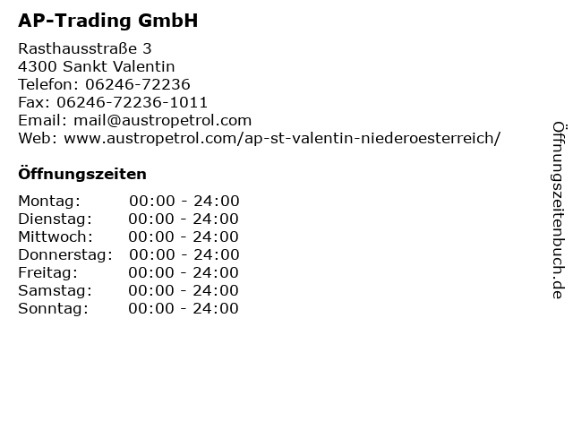 | Öffnungszeiten AP-Trading GmbH in Sankt Valentin anzeigen | |