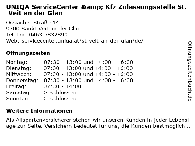 Branchen & Suchbegriffe zu UNIQA ServiceCenter & Kfz Zulassungsstelle St. Veit an der Glan:an, autoversicherung, glan, kfz, kfz-versicherung (motorrad), kfz-zulassungsstelle, krankenkasse, mietrechtsschutzversicherung, servicecenter, uniqa, veit, zahnmedizinische versicherung, zulassungsstelle |
