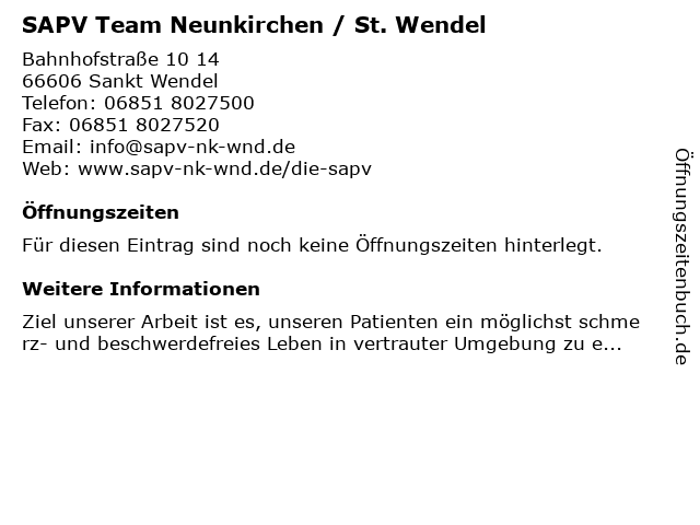 | SAPV Team Neunkirchen / St. Wendel anrufen | |