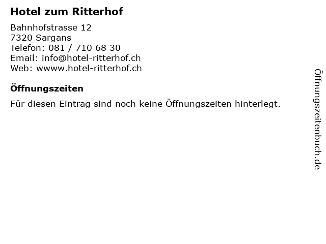 | Öffnungszeiten Hotel zum Ritterhof in Sargans anzeigen | |