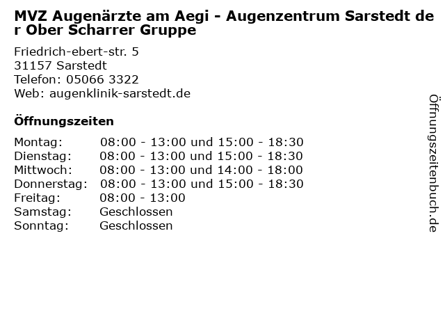 Branchen & Suchbegriffe zu MVZ Augenärzte am Aegi - Augenzentrum Sarstedt der Ober Scharrer Gruppe:aegi, augenzentrum, augenärzte, gruppe, mvz, ober, sarstedt, scharrer |