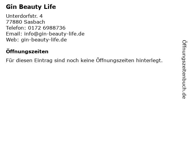 | Öffnungszeiten Gin Beauty Life in Sasbach anzeigen | |