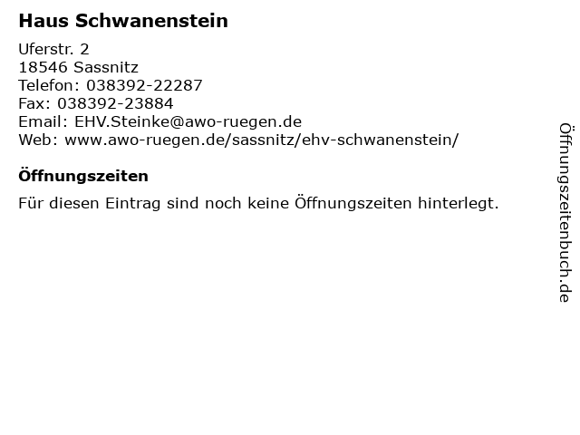 | Öffnungszeiten Haus Schwanenstein in Sassnitz anzeigen | |