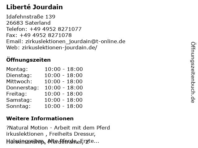 | Öffnungszeiten Liberté Jourdain in Saterland anzeigen | |