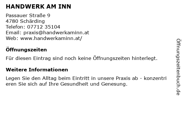 | Öffnungszeiten HANDWERK AM INN in Schärding anzeigen | |