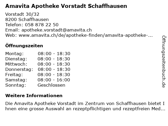 Branchen & Suchbegriffe zu Amavita Apotheke Vorstadt Schaffhausen:amavita, apotheke, drogerie, drogerien, parfümerie, schaffhausen, vorstadt |