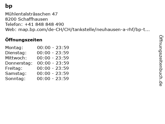 | Öffnungszeiten bp in Schaffhausen anzeigen | |