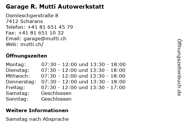 Branchen & Suchbegriffe zu Garage R. Mutti Autowerkstatt:automechaniker, autowerkstatt, dienste, garage, kfz, mutti, r. |