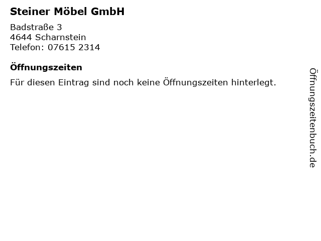 | Öffnungszeiten Steiner Möbel GmbH in Scharnstein anzeigen | |