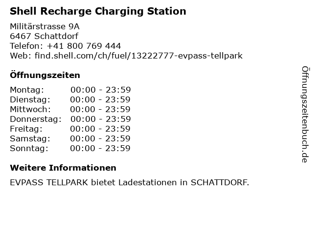 Shell Recharge Charging Station in Schattdorf: Telefonnummer, Öffnungszeiten und Adresse