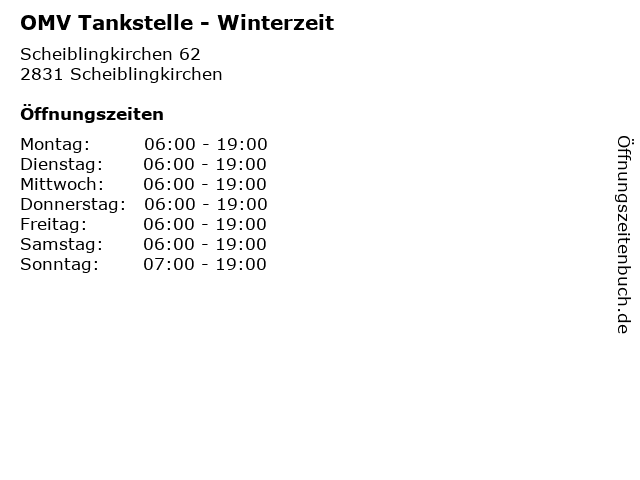 | Öffnungszeiten OMV Tankstelle - Winterzeit in Scheiblingkirchen anzeigen | |