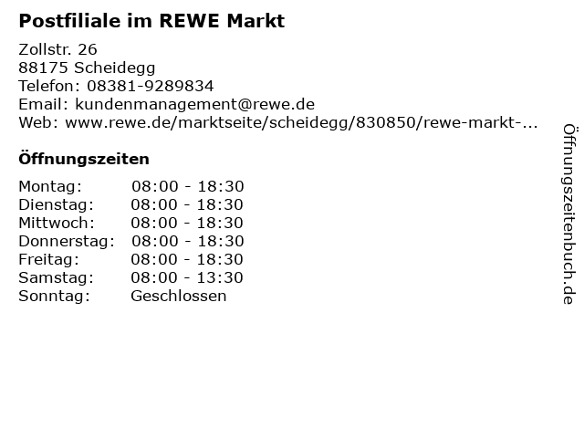 Postfiliale im REWE Markt in Scheidegg: Telefonnummer, Öffnungszeiten und Adresse