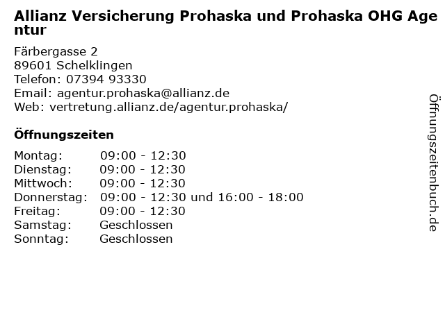 3 Allianz Versicherung Martin Prohaska Hauptvertretung (Entfernung: 11,62 km) Talstraße 14, 89584 Ehingen (Donau) 6 |