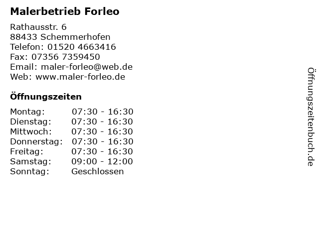 | Öffnungszeiten Malerbetrieb Forleo in Schemmerhofen anzeigen | |