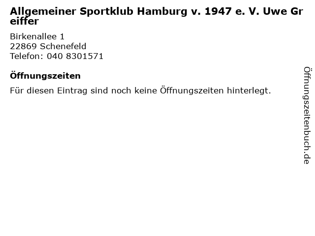 | Allgemeiner Sportklub Hamburg v. 1947 e. V. Uwe Greiffer anrufen | |