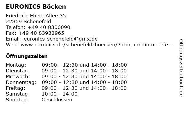 | Öffnungszeiten EURONICS Böcken in Schenefeld anzeigen | |