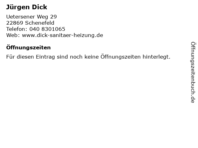 | Öffnungszeiten Jürgen Dick in Schenefeld anzeigen | |