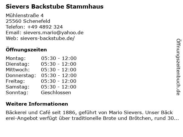 Branchen & Suchbegriffe zu Sievers Backstube Stammhaus:backstube, brote, brötchen, bäckerei, bäckerhandwerk, café, kaffee, kuchen, sievers, stammhaus, torten, vollkorn |