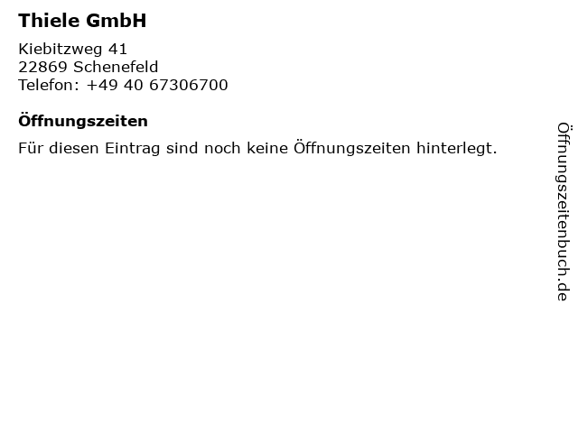 | Öffnungszeiten Thiele GmbH in Schenefeld anzeigen | |