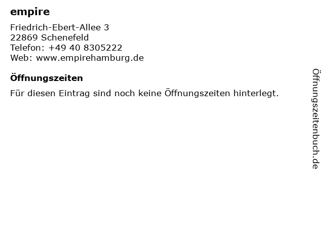 | Öffnungszeiten empire in Schenefeld anzeigen | |