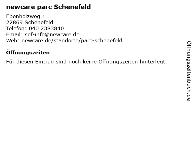 | Öffnungszeiten newcare parc Schenefeld in Schenefeld anzeigen | |