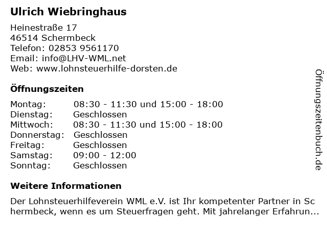 | Öffnungszeiten Ulrich Wiebringhaus in Schermbeck anzeigen | |