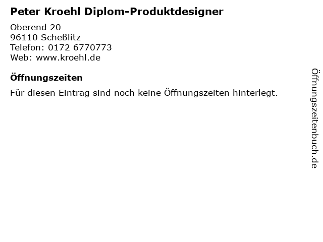 | Peter Kroehl Diplom-Produktdesigner anrufen | |