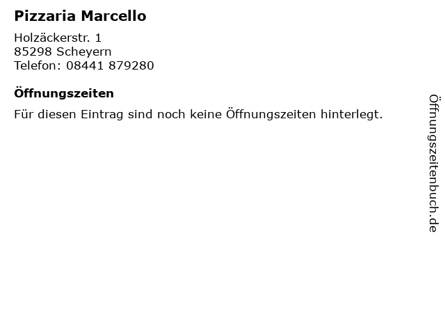 | Öffnungszeiten Pizzaria Marcello in Scheyern anzeigen | |