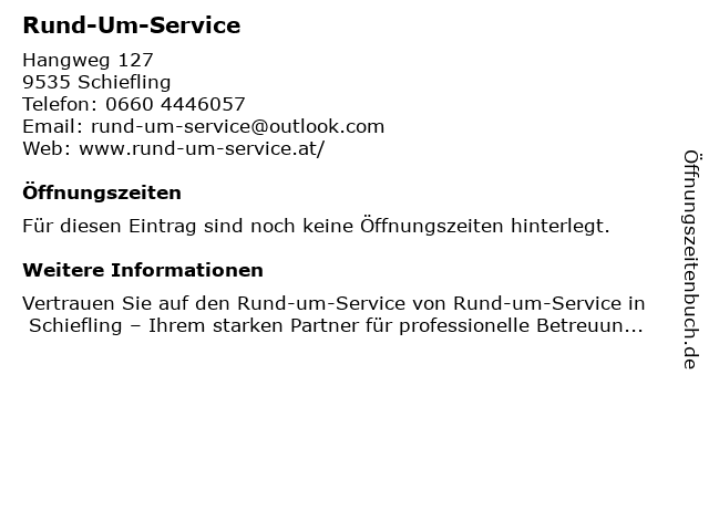| Öffnungszeiten Rund-Um-Service in Schiefling anzeigen | |