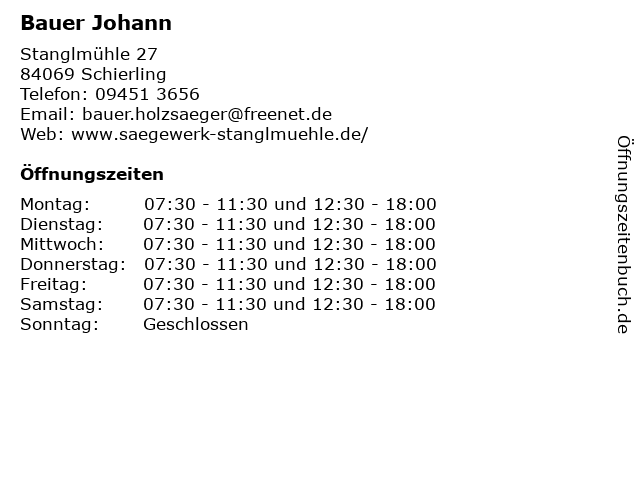 | Öffnungszeiten Bauer Johann in Schierling anzeigen | |