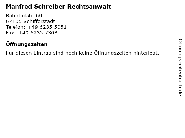 | Manfred Schreiber Rechtsanwalt anrufen | |